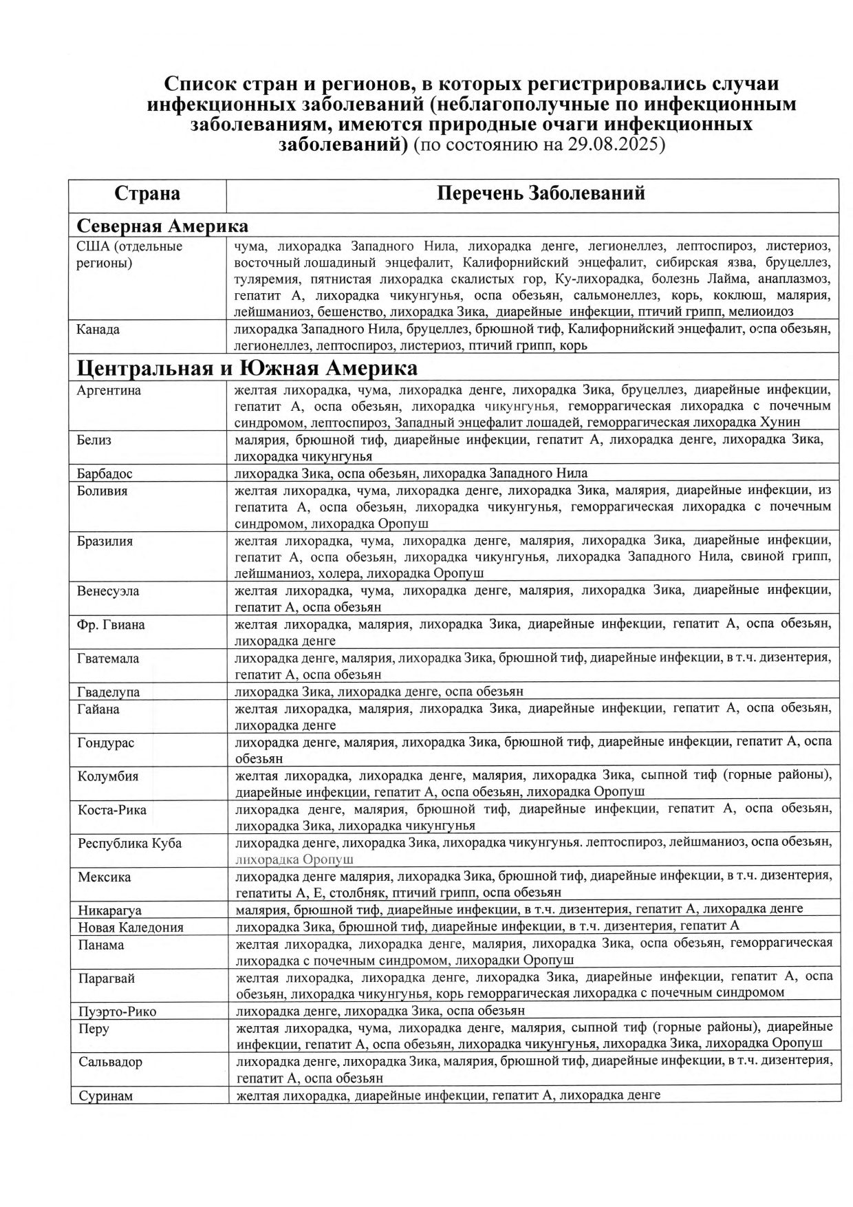 Список стран и регионов, в которых регистрировались случаи инфекционных заболеваний